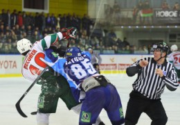 ![]() В какой бы форме ни находился "Ак Барс", матчи с участием чемпиона всегда вызывают невероятный интерес. Тем более, когда играет казанская команда в гостях с нынешним лидером регулярки – минским "Динамо". В равном по сути поединке сильнее оказались хозяева, продолжающие удивлять на старте сезона… Стартовый отрезок остался за гостями. Минчане не успели войти в игру, как уже оказались в меньшинстве. Коробов неловко поднял клюшку слишком высоко, за что и был на пару минут отстранён от игры. Большинство в этом сезоне "барсы" реализуют с переменным успехом, но на сей раз сделали всё как надо. После нескольких неудачных атак, когда "Динамо" успевало выбить шайбу подальше, очередной вход в зону завершился для гостей голом Хоссы с передачи Захарчука. Но и в равных составах казанцы поначалу смотрелись заметно лучше. Минск перешёл на тактику контратак, которые до Веханена долгое время не доходили вовсе. Все потуги хозяев обрывались не точными передачами, а вот "Ак Барс" напротив, имел шанс увеличить счёт. Злую шутку с командой Билялетдинова сыграло удаление. В действиях Песонена судья усмотрел подножку, и вот уже "барсы" отбиваются вчетвером от хозяйских атак. Раз отбились, два отбились, но преимущество в одного игрока "Динамо" всё же использовало. Наконечником разящей атаки стал Штумпел. Словацкие 1:1 на табло! Такое развитие событий вряд ли могло радовать опытного тренера казанцев. Его команда снова пошла в атаку, показав, что в равных составах преимущества у хозяев нет и в помине. Но если равные составы играли на руку "барсам", то вновь оказавшись в меньшинстве, они стали довольно уязвимыми. Задержкой подвёл своих партнёров Бодров. Если выстрел Спиридонова в упор Веханен отразить сумел, то вот со следующим ударом не справился. Словацкий вечер на "Минск-Арене" продолжил Подхрадски. А Глазачёв и Штумпел на сей раз выступили в роли ассистентов. Тем временем, довольный минский болельщик видел на табло счёт 2:1! Сегодня на трибунах за них болело 15531 человек - это рекорд посещаемости игр КХЛ! "Словацкий вечер на "Минск-Арене" продолжил Подхрадски" До перерыва гости пытались отыграться, но на большее, чем удаление у минчан им наработать не удалось. Да и его реализовать тоже не вышло. Лишь четвёртый случай игры в большинстве не завершился забитой шайбой. А под самый конец накал страстей вылился в драку. На перерыв с кровью на лице уходил финский легионер гостей Песонен. Минчане в свои силы окончательно уверовали и гонимые родными трибунами второй период начали активнее. Выделялся Спиридонов, но забить из выгодного положения ему не дали. При относительно равной игре вновь свой вес сыграло количество игроков в командах. Едва казанская команда получила численное преимущество, как финская карта – Яркко Иммонен сыграла. 2:2! Чемпион не сдаётся! Равным счёт продержался менее полуминуты. Спиридонов добился своего, пробив незадачливого Веханена, а Штумпел – без сомнения лучший сегодня в составе обеих команд, опять стал соавтором забитой шайбы. Ход матча не мог не заставить гостей нервничать – попытки сравнять счёт завершались неудачами раз за разом и провоцировали опасные стыки. Обстановка накалялась, и удаления шли одно за другим. Казань атакует, Минск обороняется и идёт в контратаку – в таком режиме прошло оставшееся время второго периода. Перед заверша